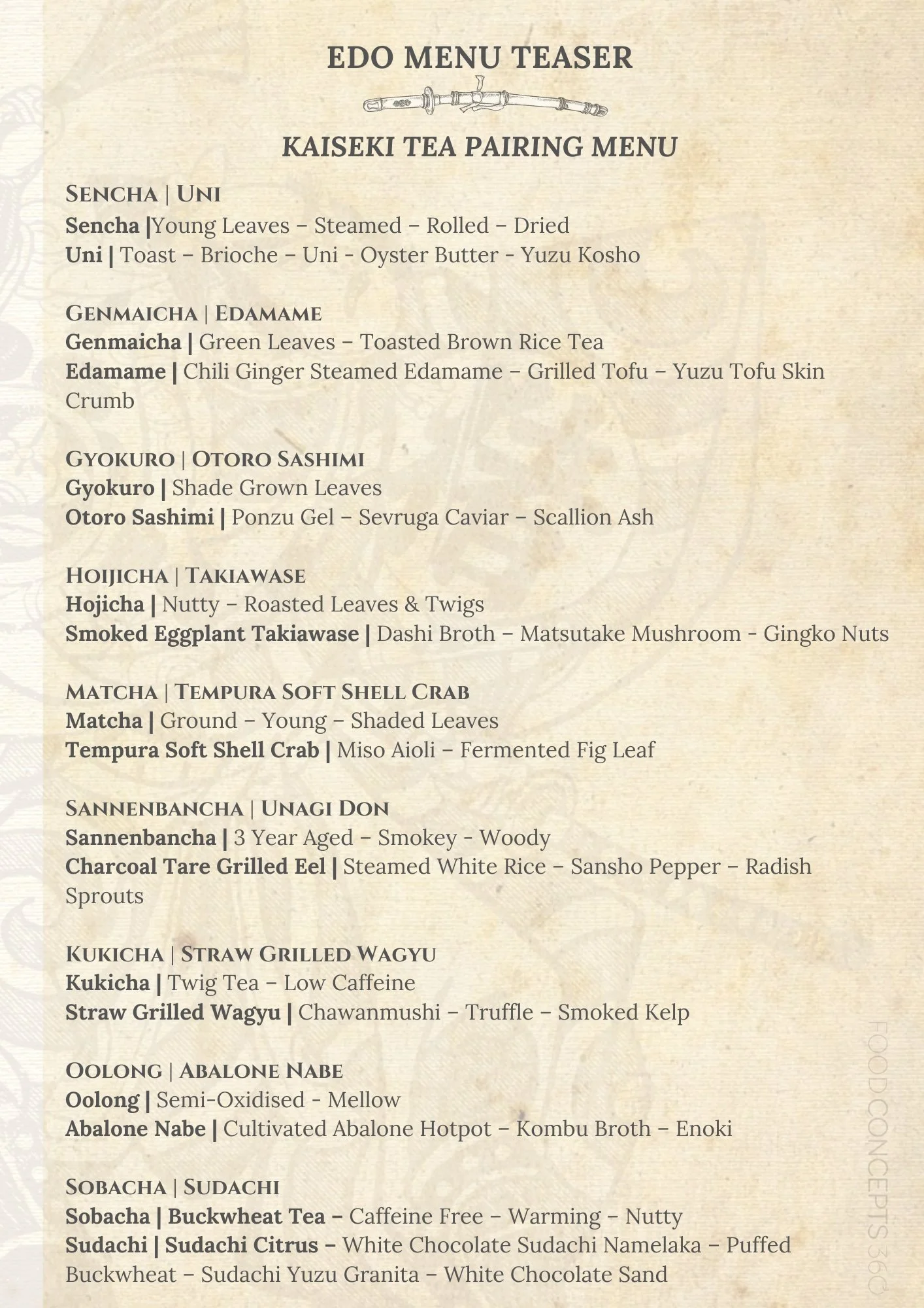 Edo - Samurai Tea Room celebrates the art of Kaiseki dining, a traditional Japanese multi-course meal. Our dishes are crafted to highlight the freshest seasonal ingredients, reflecting a deep respect for nature and harmony.