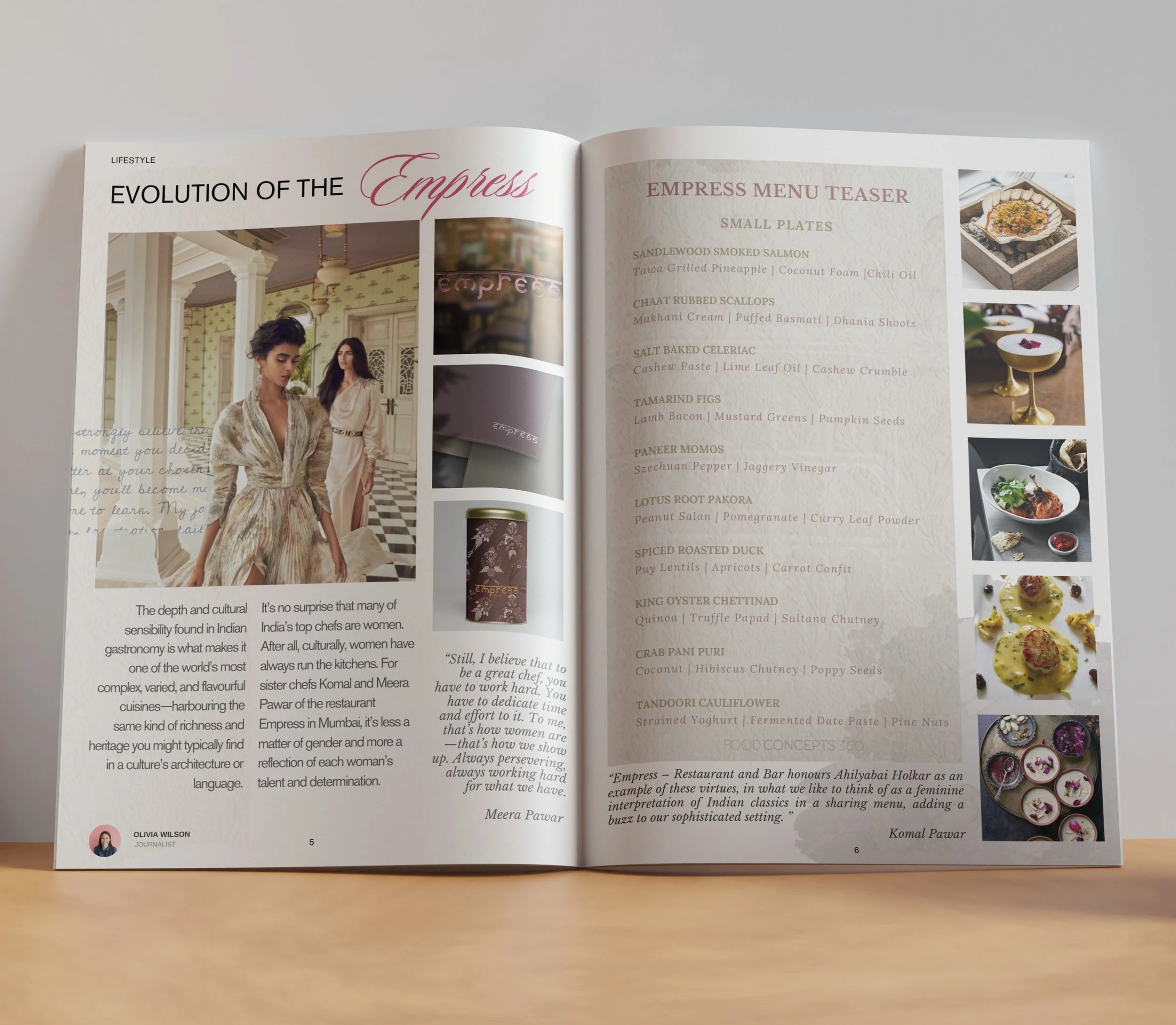 Empress – Restaurant & Bar redefines traditional Indian cuisine through a refined, contemporary lens, offering an exquisite dining experience that resonates with today’s global trends in Indian gastronomy. Inspired by the legacy of Ahilyabai Holkar, this concept merges the rich history and cultural heritage of India with a modern, sophisticated approach, appealing to discerning palates.
